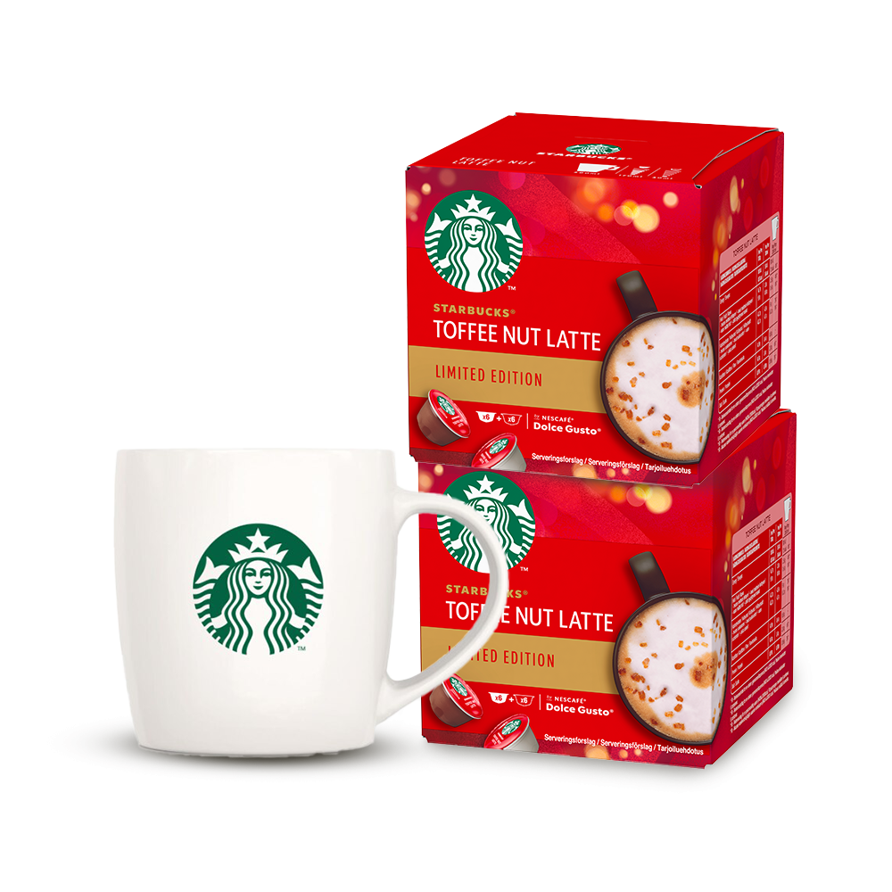 Kup zestaw Starbucks Toffee Nut Latte z kubkiem Starbucks® w promocyjnej cenie i rozkoszuj się przytulnymi zimowymi porankami.
